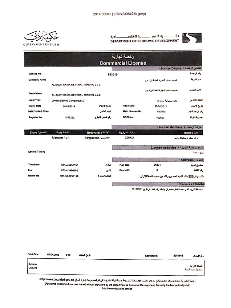 Tel: +00971-4-3466350, Fax: +00971-4-3466360 Cell No.+00971-505726630