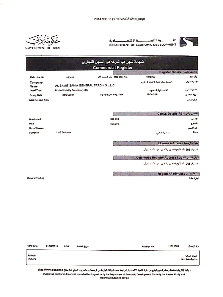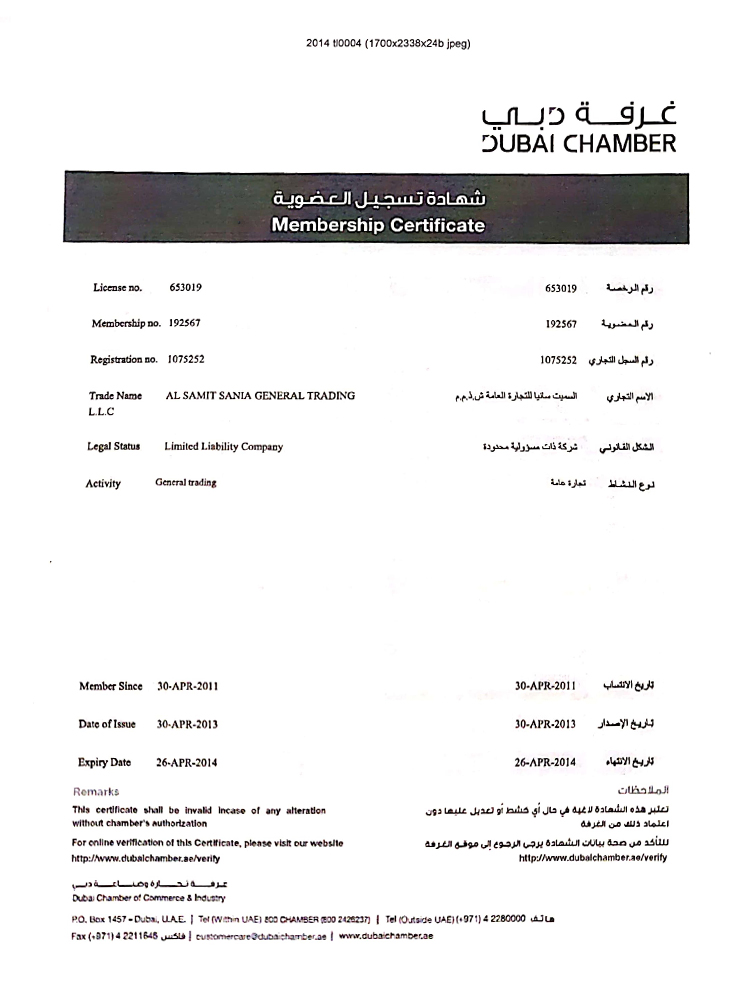 Address: 205, Madroof Buildin, Al safa 1 Sheikh Zayed Road Dubai-UAE.